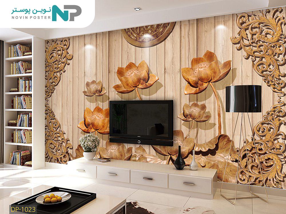 معرفی انواع متریال جهت چاپ پوستر دیواری سه بعدی گل طرح چوب 1023