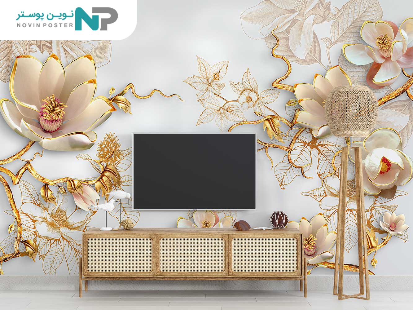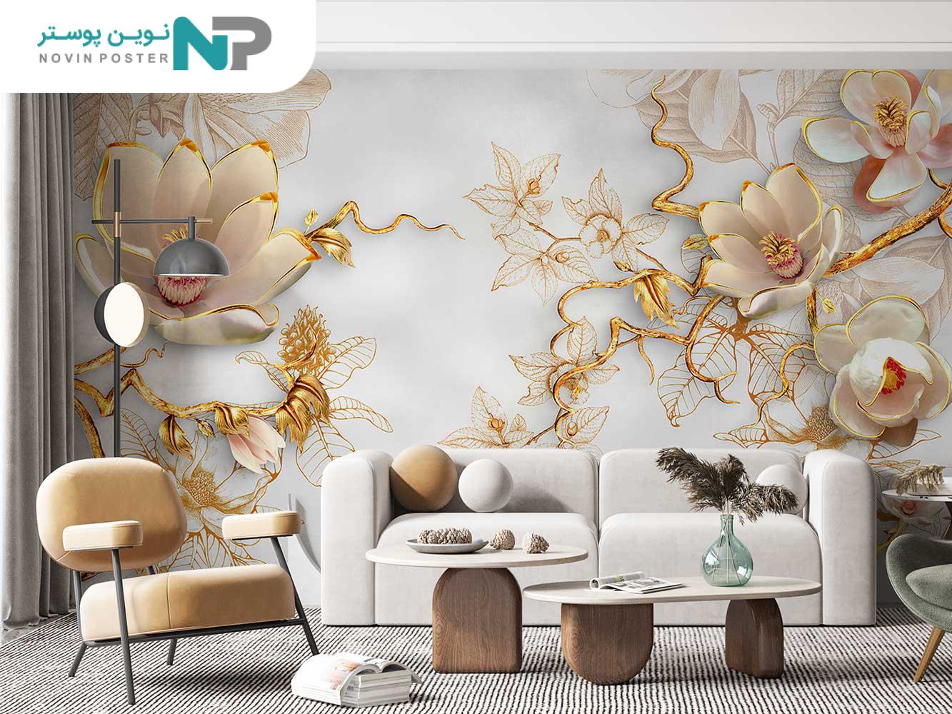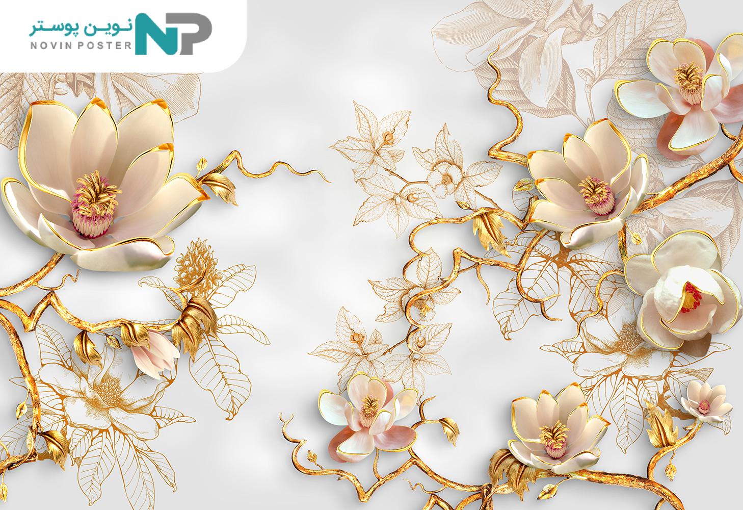 معرفی انواع متریال جهت چاپ پوستر دیواری سه بعدی گل طلایی 13510300