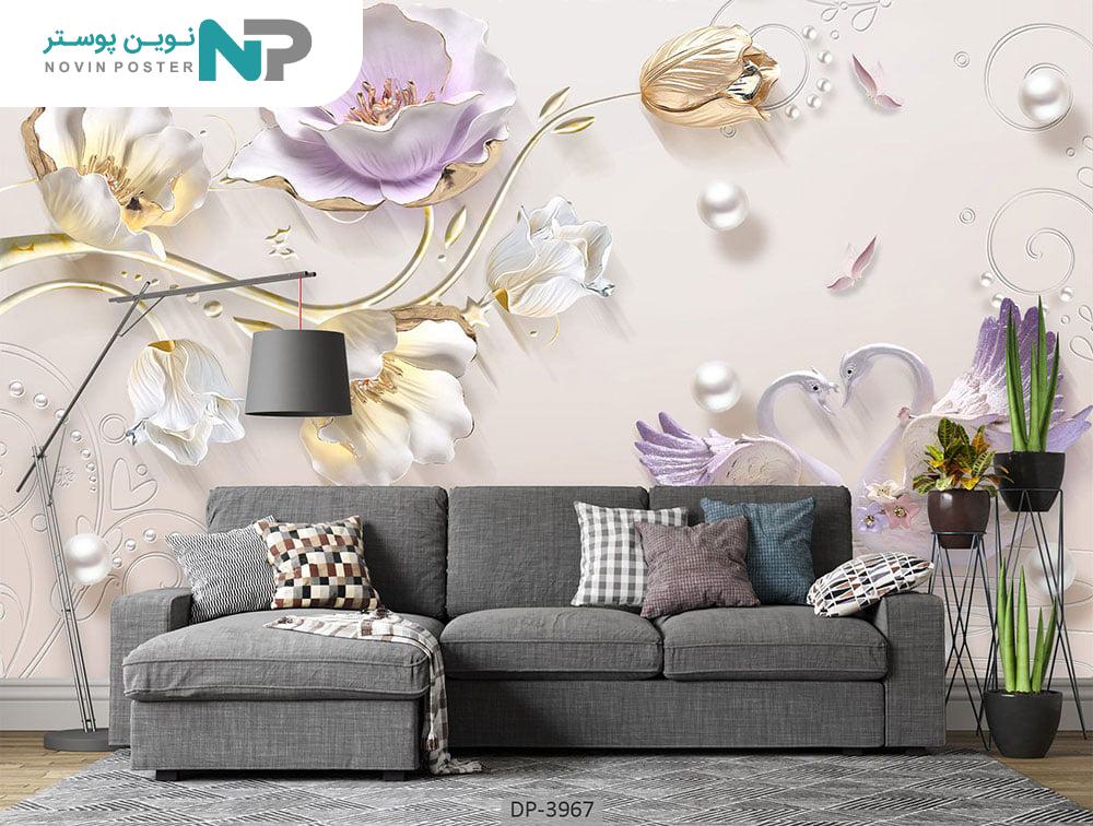 مزایای خرید پوستر دیواری سه بعدی گل فانتزی 3967 از نوین پوستر